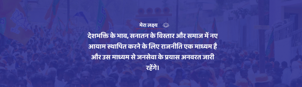 देशभक्ति के भाव, सनातन के विस्तार और समाज में नए आयाम स्थापित करने के लिए राजनीति एक माध्यम है और उस माध्यम से जनसेवा के प्रयास अनवरत जारी रहेंगे।